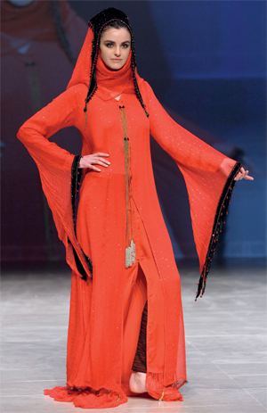 قدمت دار أزياء «ميمسين» في العرض نفسه مجموعة تزاوجت بين العباءات والجلابيات، والتي تفاوتت بين تلك المميزة ذات التنفيذ الجيد، والتي افتقرت إلى الابتكار والجدة.