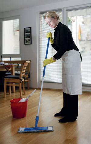 وقامت طبيبة الأمراض الجلدية أندريا باور بتحليل بيانات العلاج لأكثر من 800 عامل تنظيف مصابين بأمراض جلدية. وتوصلت نتائج هذا التحليل إلى أن عمال التنظيف غير المتخصصين والمتخصصين على حد سواء غالباً ما يستخدمون قفازات خاطئة، ما يتسبب في إصابتهم بإكزيما تلامسية، حيث يصاب الجلد باحمرار وحكة وتقيح بمجرد أن يلامس مواد التنظيف، الأمر الذي يمكن أن يؤدي إلى الإصابة بحساسية. وتنصح باور بأنه من الأفضل استعمال مواد تنظيف خالية من الألوان والعطور والمواد الحافظة، فبذلك يقل خطر الإصابة بحساسية إلى حد كبير.