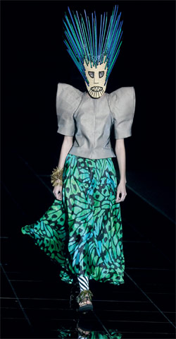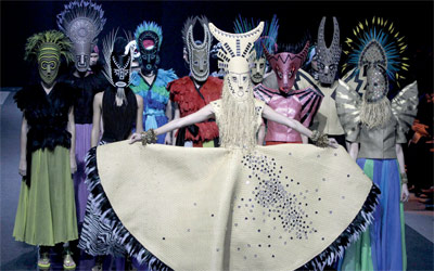 عرْض المصممة الروسية كونستانتين غايداي تحول إلى عرض أقنعة إثنية مخيفة صاحبت الابتكارات التي قدمتها المصممة، ما جعله عرضاً أقرب إلى عروض الفانتازية المسرحية، وذلك خلال أسبوع فولفو للموضة، أول من أمس.