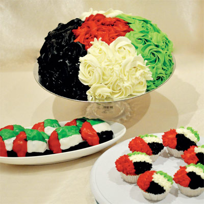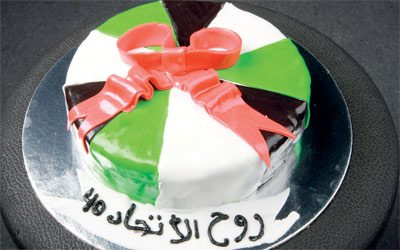 كما نجحت (أم لطيفة) بابتكار كيكة «روح الاتحاد» التي زينتها بطبقة كاملة من عجينة السكر الملوّنة بألوان العلم، كما تزينت بـ«فيونكة» كبيرة ومتموجة، وكتبت أسفل الكيكة عبارة «روح الاتحاد»، مؤكدة أن هناك طلبات كثيفة على هذه الكعكات، خصوصاً والأخيرة منها، والتي تنتشر عبر «بلاك بيري»، ويتم طلبها أيضاً عن طريق الاتصال أو «بلاك بيري».