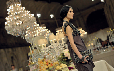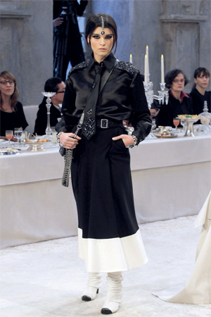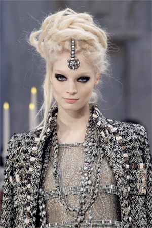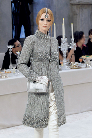 مجموعة من العارضات مزدانات بتصاميم وإكسسوارات فضية مزيّنة بأحجار مستوحاة من الحضارة الهندية والملابس الهندية التقليدية بقصاتها وخاماتها، من مجموعة ما قبل الخريف للمدير الإبداعي لدار الأزياء الفرنسية «شانيل»، كارل لاغرفيلد، وهي المجموعة التي حملت عنوان «باريس ـ بومباي». ومنذ عام 2003 تطلق «شانيل» مجموعة سنوية بالتوازي مع مجموعة الملابس الجاهزة والهوت كوتور، والتي تعرف باسم «ماتير دي آرت» والمستوحاة هذا العام من الهند بكل ما تحمله هذه الكلمة من صناعات، وتراث فني من ملابس وإكسسوارات وألوان وخامات غنية.