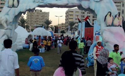 كما تقام عروض كرنفالية ومسارح الدمى المتحركة، في جزيرة موج الجليدية، مصاحبة للمهرجان، منها مسرح موج، وعرض أهلا موج، وفقرة ميمي والمهرجون والدمى المتحركة، أما الألعاب وورش العمل فهي كثيرة ومتنوعة وتعرض يومياً على مدى 10 أيام للمهرجان، منها ورشة عمل الطبول وإدارة الدفاع المدني وتشكيل البالونات والرسم على الوجوه، وفقرات الألعاب والمسابقات، منها الألعاب الرملية وألعاب الفرق الجماعية، إضافة إلى منطقة لعب الأطفال، وعروض معركة الوسائد وأرض الأحلام.