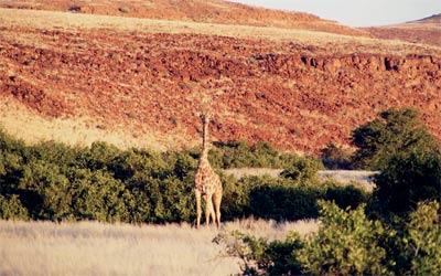 قبل أن تشرق الشمس على صحراء «ناميب» وتغطي صخورها البازلتية بلون أحمر ساطع، يقف دينسون تجيراسو، زميل ناواسب في فريق البحث، على سطح التحميل الخاص بسيارته الجيب العتيقة، ليقتفي آثار وحيد القرن. وفي بادئ الأمر يرى تجيراسو على ضفاف نهر «أشاب»، الذي لم تجف مياهه بالكامل بعد، زرافة صغيرة تشعر بالخوف وعدم الأمان وتبحث يميناً ويساراً عن والديها اللذين اختفت آثارهما. ويقول تجيراسو: «ربما وقع والدها فريسة لأسود جائعة». وفي الدروب الرملية تقع عين تجيراسو على آثار واضحة المعالم لوحيد القرن. وعلى الرغم من وجود أثر لقدم واحدة فقط، إلا أن الباحثين الميدانيين تجيراسو وناواسب يعرفان جيدا أين يتعين عليهما البحث.