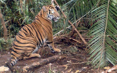 نمر سومطرة أصيب بجروح بعد إصابته برماح. أ.ف.ب
