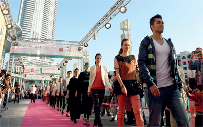 استضاف ممشى البروميناد في «دبي مول»، أول من أمس، أطول منصة عرض أزياء في الشرق الأوسط، بطول 120 مترا، بمشاركة 120 عارض ما بين محترف وهاو، في حدث يعد الأول من نوعه في المنطقة، ويسعى لتحقيق رقم قياسي، والدخول إلى موسوعة «غينيس». وأتى تنظيم «أطول منصة عرض أزياء في الشرق الأوسط» بعد عروض «أزياء دبي»، إحدى أبرز الفعاليات التي نظمها مهرجان دبي للتسوق، على مدار اسبوع كامل.