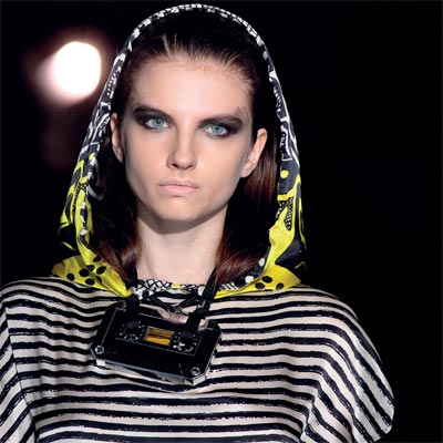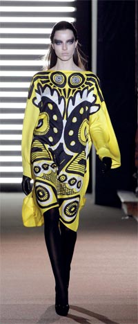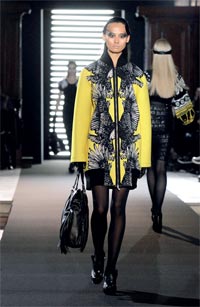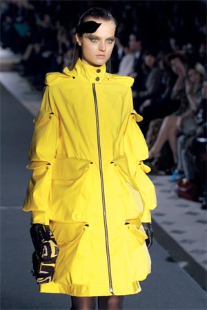 عارضات يقدمن تصاميم من مجموعة خريف وشتاء 2012 للملابس الجاهزة، للمصمم جين شارلز دي كاسلباجاك، الثلاثاء الماضي، خلال أسبوع باريس لموضة الملابس الجاهزة في العاصمة الفرنسية