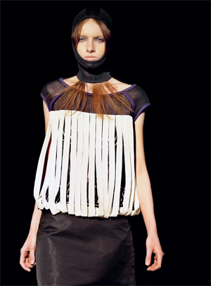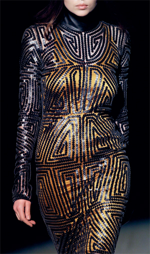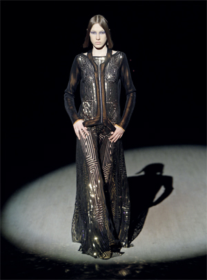 عارضات يقدمن تصاميم من المجموعة الأخيرة للمصمم الإيطالي كريستيانو بوراني، خلال أسبوع أوكرانيا للموضة في العاصمة الأوكرانية كييف، أخيراً، واعتمدت المجموعة على التور المزين بالترتر والطبقات الذهبية المتعددة، إضافة إلى معاطف الفرو السميكة معتمداً الدرجات الداكنة.