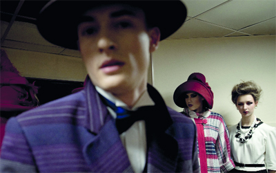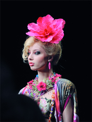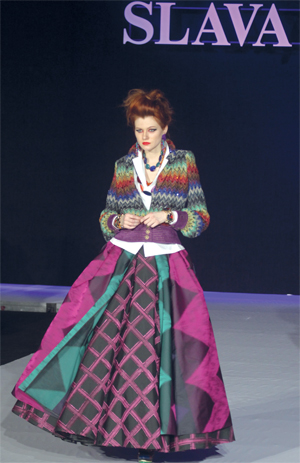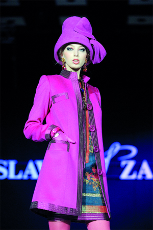 عارضات وعارضون يقدمون مجموعة من ابتكارات مصمم الأزياء الروسي سلافا زايتزيف، الذي احتفل بمرور 50 عاما، على انطلاق علامته التجارية، خلال أسبوع الموضة في العاصمة الروسية موسكو الأسبوع الماضي.
