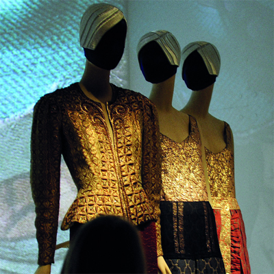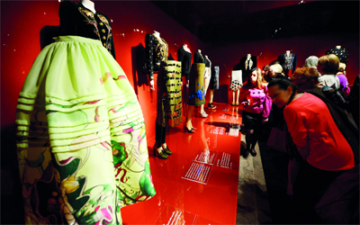 زوار يتأملون قطعاً من ملابس وإكسسوارات خلال معرض «شياباريلي وبرادا: الحوار المستحيل»، الذي نظمه معهد الملابس في متحف متروبوليتان للفنون، أول من أمس، وهو الافتتاح الذي حضره نخبة من مشاهير هوليوود، وعالم الموضة والفن والموسيقى. ويستمر المعرض حتى 19 من أغسطس المقبل، ويعرض نحو 100 تصميم و40 قطعة إكسسوار للمصممة إيلسا شياباريللي (1890 ـ 1973) مقدماً إبداعاتها منذ أواخر عقد العشرينات وحتى أوائل الخمسينات من القرن الماضي، وقطعاً أخرى لمويشيا برادا منذ أواخر الثمانينات وحتى الوقت الحالي، وهي المجموعة التي تم جمعها من معهد الملابس، وأرشيف دار الأزياء الإيطالية برادا، وعدد آخر من المعاهد والمجموعات الخاصة.