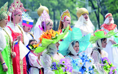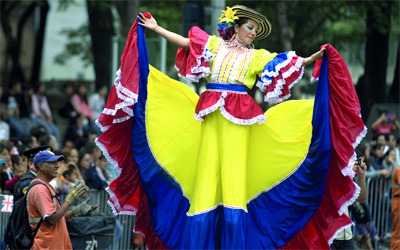 من فعاليات افتتاح معرض ثقافات الشعوب الصديقة الذي انطلقت فعاليات بنسخته الرابعة، أخيراً، في العاصمة المكسيكية مكسيكو سيتي، بمشاركة وفود دول عدة.