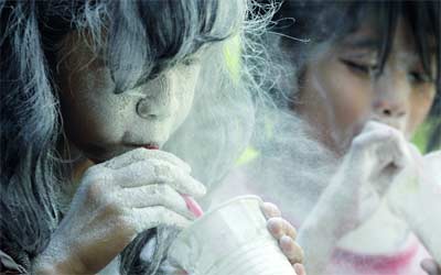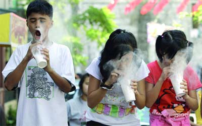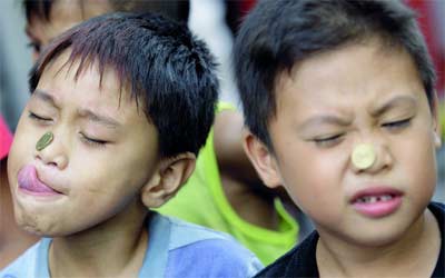أطفال يلهون خلال احتفال بعيد فلبيني في العاصمة مانيلا.