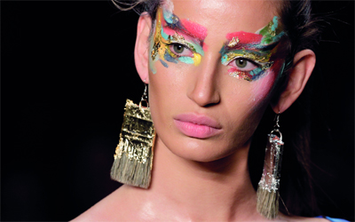عيون مسكونة بالألوان والسهر والظلال وآخر صيحات الموضة، لعارضات يضعن لمسات مكياجهن الأخيرة، تأهبا للمشاركة في أسبوع الموضة في ريو دي جانيرو البرازيلية.
