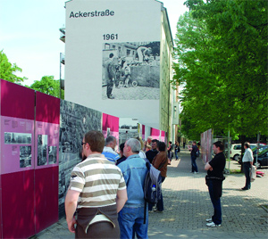 ويمثل النصب التذكاري لجدار برلين الكائن في شارع برناو 111 نقطة انطلاق جيدة للرحلة، فهنا ترتبت على بناء الجدار عواقب جسيمة، حيث فرق الجدار شمل جيران وأسر لا يفصل بينهم سوى القليل من المنازل. وفي البداية لاذ بعض سكان برلين الشرقية بالفرار إلى غرب برلين عبر المنازل التي تقع بالقرب من الجدار مباشرة، وأحياناً عن طريق شبكة الإنقاذ الخاصة بوحدة مطافئ برلين الغربية، إلى أن تم سد نوافذ المنازل، وهدم البنايات في وقت لاحق.