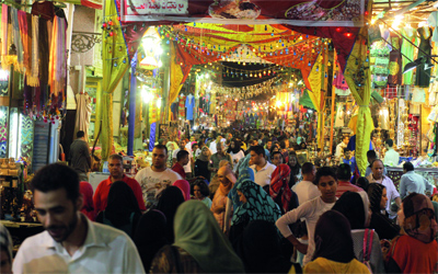 مئذنة «الحسين»، وبخور فواح، وبائعو لعب أطفال، ومصريون وسياح.. بعض ملامح أمسية رمضانية في حي سيدنا الحسين العريق في القاهرة الفاطمية.