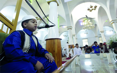 فتيان يؤدون بخشوع صلاة التراويح في أحد المساجد العامرة في العاصمة المصرية القاهرة، وآخرون يتابعون بخشوع أيضاً التلاوة في مسابقة لحفظ القرآن الكريم في أحد مساجد مدينة بني غازي في ليبيا.
