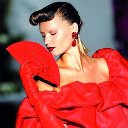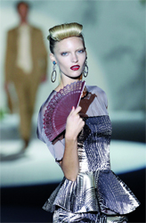 عارضات يقدمن ابتكارات مختلفة للمصمم الإسباني روبرتو برينو خلال أسبوع مرسيدس بنز للموضة في العاصمة الإسبانية مدريد.