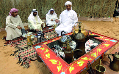 جلس الإماراتي سيف السويدي، الطالب في كليات التقنية العليا، وسط جمهور كبير وهو يرتدي الرداء الياباني التقليدي ليشرح لجمهور المعرض الدولي للصيد والفروسية «أبوظبي 2012» طريقة إعداد الشاي الياباني الذي يحتاج إلى طقوس معينة شرحها بالتفصيل.