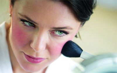 يمنح أحمر الخدود وجه المرأة طلة مشرقة تشع نضارة وحيوية. وكي يدوم تأثير أحمر الخدود طويلاً ينصح فنان التجميل الألماني ديتر بونشتيتر النساء، لاسيما ذوات البشرة الدهنية، بوضع طبقة من بودرة مطفأة قبل وضع أحمر الخدود؛ إذ إنها تحول دون أن يسيل أحمر الخدود على مدار اليوم.