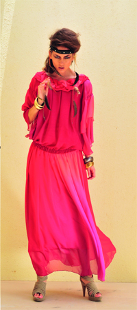 انعكست تأثيرات حضارة الهنود الحمر على المجموعة من خلال تبني المصممة فكرة الجدائل التقليدية، واستخدامها في التصميم، مع إضافة المطبوعات المنقوش عليها بعض رسومات الحيوانات والريش، إضافة إلى الاستعانة بالأخير زينة في بعض القطع، واعتمادها فكرة التخريم، التي تفاوتت بين خامات التنانير أو زينة الأكتاف، فوق خامات ملونة ومطبعة، كما اعتمدت فكرة الصدر المموج بطبقات من الشيفون الحريري، على خامات سادة، ما أعطى المجموعة تنوعاً شديداً، من دون الخروج عن الفكرة المتسلسلة، الأمر الذي يعكس تطور المصممة وخطوطها.