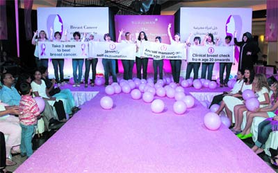 قدمت 12 ناجية من مرض سرطان الثدي رسائل أمل وتوعية، خلال عرض للأزياء نظم، أخيراً، في مركز برجمان بدبي. ووسط قصاصات الورق والبالونات الوردية التي أطلقت في ختام الفعالية، رفعت الـناجيات اللاتي ينتمين لـ11 جنسية مختلفة بطاقات لحث النساء على أن يتخذن خطوات استباقية، ويقين أنفسهن عبر إجراء الفحوص السريرية المنتظمة، بدءاً من سن 20 عاماً، وإجراء الفحص الإشعاعي بالماموغرام بعد سن 40 عاماً. وقدمت الناجيات من السرطان دليلاً حياً على أن الفحوص المنتظمة والكشف المبكر يسهمان بصورة كبيرة في زيادة معدلات النجاة بين المريضات بسرطان الثدي. وقالت إلين داوسون (45 عاماً): «شاركت في الفعالية لأنها مبادرة متميزة وفرصة لإعلام وتوعية الجميع بضرورة إجراء الاختبارات الذاتية والاعتناء بالنفس»، مضيفة أن «تشخيص الإصابة بسرطان الثدي لا يعني نهاية العالم، فها نحن قد استطعنا النجاة من المرض، وأعرف أن الناس يطلقن علينا ناجيات، بيد أنني أحب أن يطلق علينا اسم فائزات، لأننا قاومنا السرطان، واستطعنا التغلب عليه». يشار إلى أن «عرض أزياء الناجيات من سرطان الثدي» يعد الفعالية الأولى ضمن سلسلة أنشطة التوعية المجتمعية التي تقام خلال أكتوبر الجاري في إطار فعاليات حملة بصحة وعافية من «برجمان».