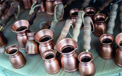 تحتل أواني الشاي والقهوة مكانة مميزة عند الأتراك، فهي تنقش بزخرفة مميزة، وقال عن هذه الأواني المصمم التركي، رجب يوكسيل «نعتمد في تصميم الأواني الخاصة على الحرف اليدوية لنقش المعدن ثم يوضع الزجاج داخله». ونوه بأن التصاميم مستوحاة من أماكن مختلفة من تركيا والعالم العربي أيضاً، مشيراً الى أن الأواني معروفة بالتراث التركي، لأنها كانت تقدم للسلاطين، حيث كانوا يتبارون في تقديم أفضل كوب للشاي للسلطان للحصول على هدية منه. واعتبر ان هذه الأكواب ولاسيما التي تحمل الأغطية لا يمكن ان تستخدم بشكل يومي وإنما في مناسبات محددة.
