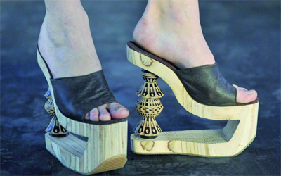 تتصدر مجموعة الأحذية والصنادل الجديدة تصميمات تحمل نحو المستقبل، ونماذج هندسية وكعوب كالتحف الفنية عالية ومزينة بمطبوعات ملونة ورسومات متنوعة. وأصبحت جلود الحيوانات، والخرز، والسحابات، والابازيم، والحبال، والأشرطة، من المواد التي تستخدم في تزيين الأحذية والصنادل المصنوعة من الجلد اللامع (الفيرنيه)، أو الستان.