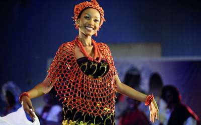 متسابقات يرتدين أزياء تقليدية خلال منافسات ملكة جمال إيكو التي أقيمت أول من أمس في العاصمة النيجيرية لاغوس.