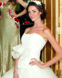 بينما قدمت دار سارة للأزياء فستاناً للعروس باللون العاجي (اوف وايت)، تميز بأناقة تصميمه الواسع، وتطريزاته التي اكسبته فخامة واضحة، بينما امسكت العروس بقلب احمر بمناسبة عيد الحب (فالنتين). كما قدمت فستاناً مجسماً باللون الذهبي تزينه على الصدر والأكتاف ورود باللون الأحمر.