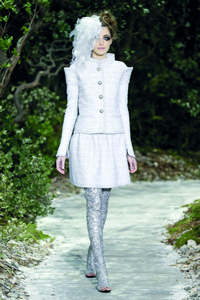 عارضات يقدمن آخر إبداعات «ربيع وصيف 2013»، لمصمم بيت أزياء «شانيل» الفرنسية، الألماني كارل لاغرفيلد، خلال عرض للأزياء في باريس أمس.