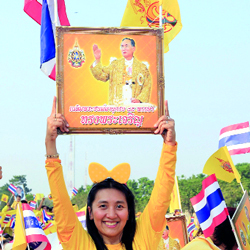 احتفالاً بعيد ميلاد الملك بوميبول يرتدي أنصاره اللون الأصفر المفضل لديه. د.ب.أ