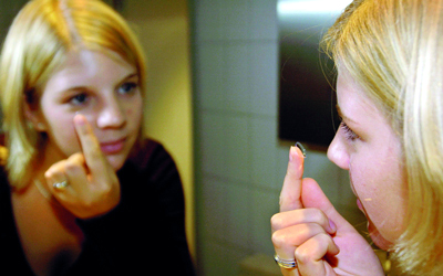 الضبط والتهيئة أكّد طبيب العيون الألماني جورج إيكرت ضرورة ضبط وتهيئة العدسات اللاصقة داخل العين عند ارتدائها، محذراً من عدم الالتزام بذلك بقوله: «إذا تم وضع العدسات داخل العين بشكل غير سليم، سيؤدي ذلك إلى تكوّن ندبات على الطبقة السطحية من العين، بعدها لن يُمكن ارتداء العدسات اللاصقة مطلقاً». وكي لا يصل الأمر الى ذلك، أكدّ إيكرت ضرورة أن يخضع مرتدو العدسات اللاصقة للفحص مرتين خلال العام على أقل تقدير. |