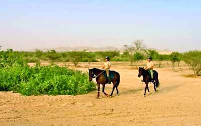 تتيح جزيرة صير بني ياس، لزوارها، فرصة استكشاف الحياة البريّة عن قرب، من خلال النزهة على ظهر الخيل، التي تدوم ساعتين، وتُخصص للخيالة المتمرّسين الذين ينطلقون في نزهة، يُراقبون فيها مجموعة متنوّعة من الحيوانات، مثل المها والزرافات والغزلان والفهود. تُشكِّل هذه الجولات الصديقة للبيئة تحيّةً لتقليد راسخٍ، سيراً على خطى مؤسس الإمارات الشيخ زايد، طيب الله ثراه، الذي أراد للزوّار أن يلجأوا إلى فيء جزيرة تُعشش في الطبيعة، وتضرب جذورها في التقاليد والثقافة. وقالت المسؤولة عن شؤون الخيل في إسطبلات صير بني ياس، لورا مكلوكاس، «يُضفي نشاط التنزّه وسط الحياة البريّة على ظهر الخيل بعداً أصيلاً وتاريخيّاً على مجموع النشاطات المتاحة بالجزيرة، ما يُشكِّل فرصةً لاسكتشاف الحياة البريّة عن كثب، وحيث يمكن تعديل الجولات للخيالة، بدءاً بالدروس المخصصة للمبتدئين في الميدان، وصولاً إلى النزهات الملكية على الشاطئ، توفِّر إسطبلات صير بني ياس باقةً من النشاطات المناسبة للجميع على اختلاف الأعمار والقدرات»، موضحة «التنزه وسط الحياة البريّة على ظهر الخيل، يشكل فرصةً للعودة إلى ثقافة الجزيرة وإرثها في ظلّ اسكتشاف الحياة البريّة الفريدة من نوعها، على غرار ما درج عليه المسافرون العرب في الأزمنة الغابرة.