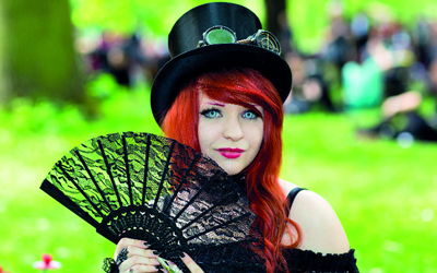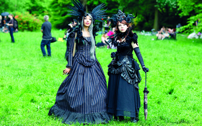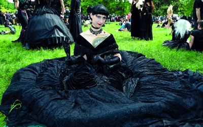 مشاركات بملابس سوداء، وقبعات يزينها الريش، خلال الحفلة الترفيهية بمهرجان «ويف آند غوث» التقليدي بمدينة ليبز الألمانية.