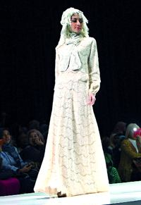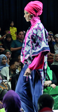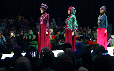 من فعاليات معرض الأزياء الإسلامية الذي أقيم أخيراً في العاصمة الإندونيسية جاكرتا، والذي قدّم أزياءً محافظة.