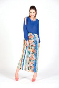 وقدمت المصممة أيضاً تنانير ذات قصة سادة مستقيمة تميزت بطبعاتها المقلمة الطولية المزينة بالزهور الملونة المتفتحة، وأخرى اعتمدت أشـــكالا هنـــــدسية مختلفة من مربعات ودوائر ورقصة وألوان متعددة، ومجموعة ذات طــــــبعات ربيعية متوردة فوق خلفيات سوداء متسعة ومستقيمة تناسب مختلف الأذواق.