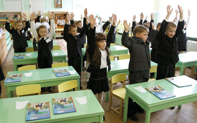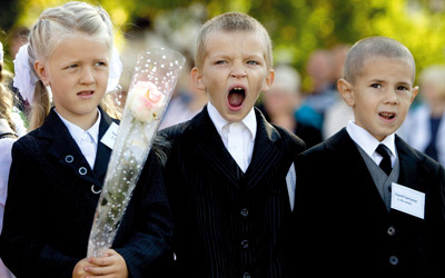 تلاميذ صغار يجربون للمرة الأولى مقاعد الدراسة، وطوابير الصباح، وفي العيون بقايا نوم وأحلام صغيرة، في بداية عام دراسي جديد في مدينة سلوتسك، التي تبعد 100 كليومتر عن عاصمة روسيا البيضاء مينسك.
