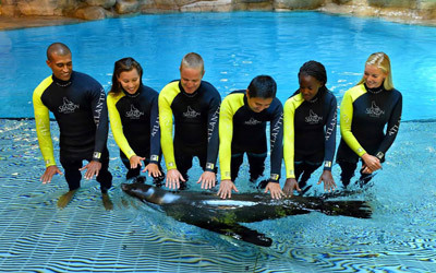 وسيتمكن الزوار، تحت إشراف مختصي الحياة المائية في المنتجع، من الدخول في بركة مياه بعمق متوسط، والقيام بالعديد من الأنشطة مع فقمة أسد البحر، بما فيها تقبيلها واحتضانها والتفاعل بشكل فردي معها. ووفقاً للمنتجع سيحصل الزائرون على فرصة للتعلم والتعرف عن قرب إلى هذا النوع المميز من الثدييات، وستكون التجربة مناسبة حتى لمن لا يجيد السباحة.