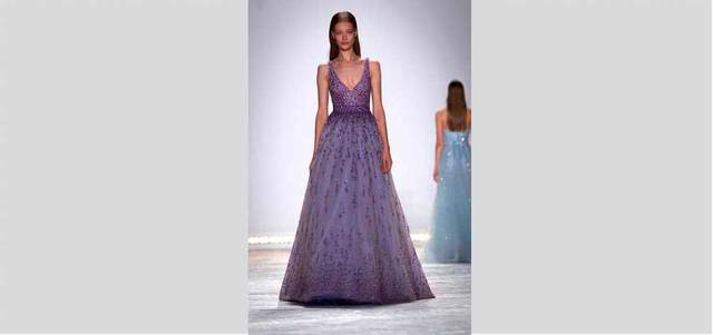 وفي مجموعتها المستوحاة من شروق الشمس، قدمت المصممة مونيك لولييه مجموعة متنوعة من الفساتين ذات الأطوال المختلفة، وبأقمشة تنوعت بين التول والترتر والدانتيل والحرير.