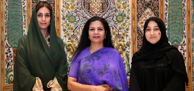 لاكشمي بوري تتوسط أميرة بن كرم ونورة النومان. من المصدر