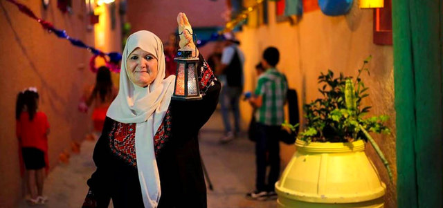 إحدى سيدات حي الزيتون تحمل فانوساً رمضانياً احتفالاً بالشهر الفضيل. من المصدر