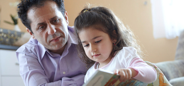 الغناء مع الطفل والقراءة له والإشارة إلى الكلمات والصور أثناء القراءة من سبل الحل. د.ب.أ