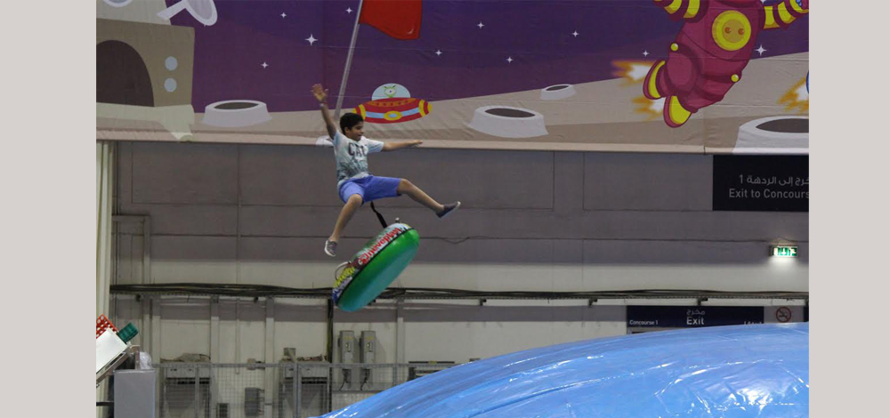 ويمتد المنحدر الثالث على مسافة 20 متراً، وينتهي بوسادة هوائية عملاقة تزيد من حجم المغامرة والمرح عندما يقفز المشارك في اللعبة من الإطار البلاستيكي الذي يحمله على هذه الوسادة المرنة، ويرتد إلى الهواء ثم يسقط مجدداً على الوسادة الهوائية.