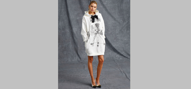 1 «موسكينو»: فستان على شكل بلوزة طويلة مزيّنة برسومات من مجموعة الـ«كروز» 2015.