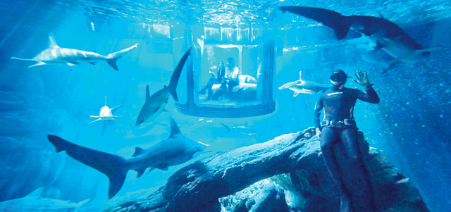 صُممت الغرفة على شكل أسطواني تتسع لشخصين، وتغوص في حوض على عمق 10 أمتار، ويفصل جدارها الشفاف النزلاء عن قروش تسبح في ثلاثة ملايين لتر من المياه، ويحتل سرير دائري الشكل أغلب مساحة الغرفة، وهي ليست لأصحاب القلوب الضعيفة.