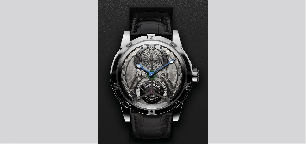 وتحتوي علبة الذهب الأبيض عيار 18 قيراط المذهلة في هذه الساعة على 50 جزء بما في ذلك واقي تاج لويس موانيه الرئيسي.