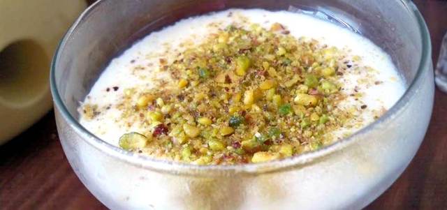 تُخلط ملعقة الطحين بالنصف المتبقي من الحليب وتوضع على النار حتى الغليان، ثم يضاف لها السكر والنصف المخلوط ببذور الشيا، وعند التماسك ترفع عن النار ويُضاف لها كمية ماء الزهر. تُسكب في أوعية خاصة للحلويات وتُبرّد في الثلاجة وتُقدم باردة.