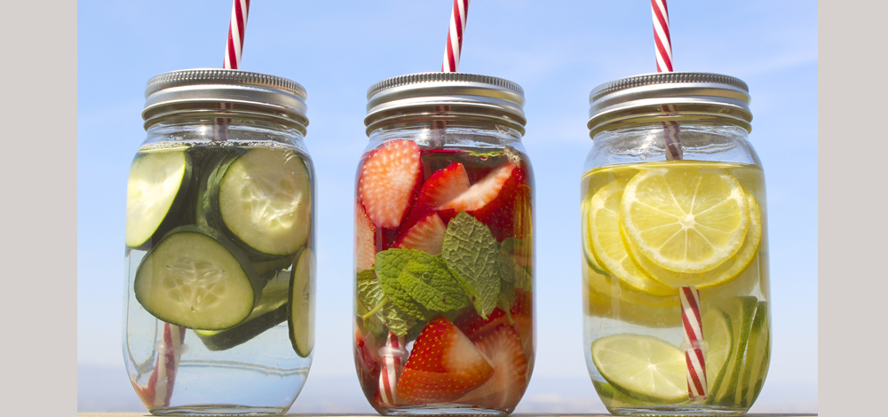 1- أضف بعض الفاكهة: اختر فاكهة تفضلها وقطّعها إلى شرائح وانقعها في إناء من الماء طول الليل، واشرب المنقوع مبرّداً، جرّب إضافة شرائح البطيخ أو الحمضيات، أو انقع قطعاً من الأناناس في الماء لساعتين، جرب هرس قطع من التوت والكرز وأضف المياه المعدنية أو المياه الغازية (الفوّارة) عليها واشربها.