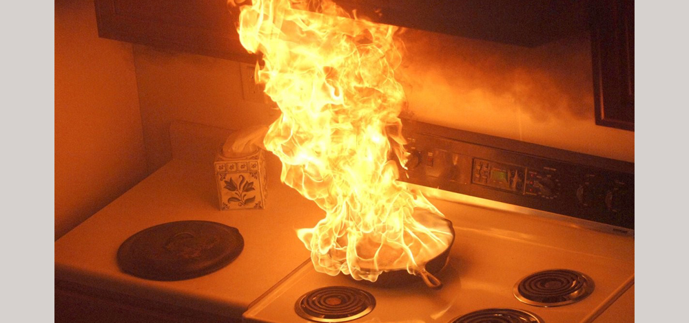 5- إذا اشتعلت النار في زيت الطهي فيجب إطفاء الموقد وتغطية الوعاء لمنع وصول الأوكسيجين، ولا يجب استخدام الماء لاخماد حرائق الزيوت حيث تنزل جزيئات الماء إلى قاع وعاء الطهي الساخن وتتبخر على الفور.