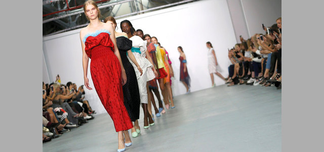 ورغم الغموض الاقتصادي لم يخل أسبوع لندن للموضة من الإبداعات الجريئة على ممرات عروض الأزياء، إذ ظهرت الألوان الزاهية والتصميمات الجذابة غير المألوفة.