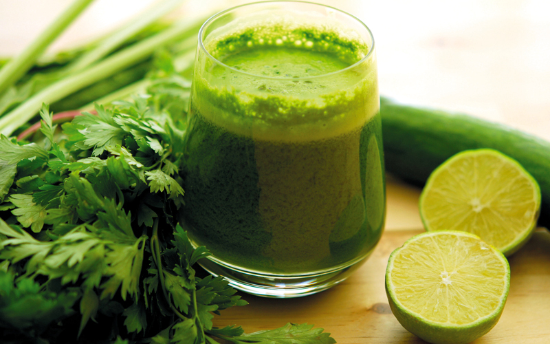 وعن أهمية العصائر الخضراء، قالت أخصائية التغذية والصحة، لمى النائلي: «أفضل العصائر التي يمكن تحضيرها في المنزل هي العصائر الخضراء، التي يتم تحضيرها من حصة واحدة من الفاكهة، وحصة من الخضراوات، وملعقة صغيرة من بذور الشيا، أو أي نوع آخر من البذور الصحية، بالإضافة إلى نصف كوب من ماء جوز الهند الصافي والخالي من السكر، إلى جانب مكعبات من الثلج»، وأضافت «يجب اختيار أنواع الفاكهة البيضاء أو الخضراء، إلى جانب الخضراوات، للحصول على العصير الأخضر». وأشارت إلى أن تحضيرها بسيط ويكمن في وضع المكونات في الخلاط الكهربائي، وبعدها يمكن تناول كوب من هذا العصير الأخضر، لأن كوباً منه يؤمّن الانتعاش، وهو قليل السعرات الحرارية.